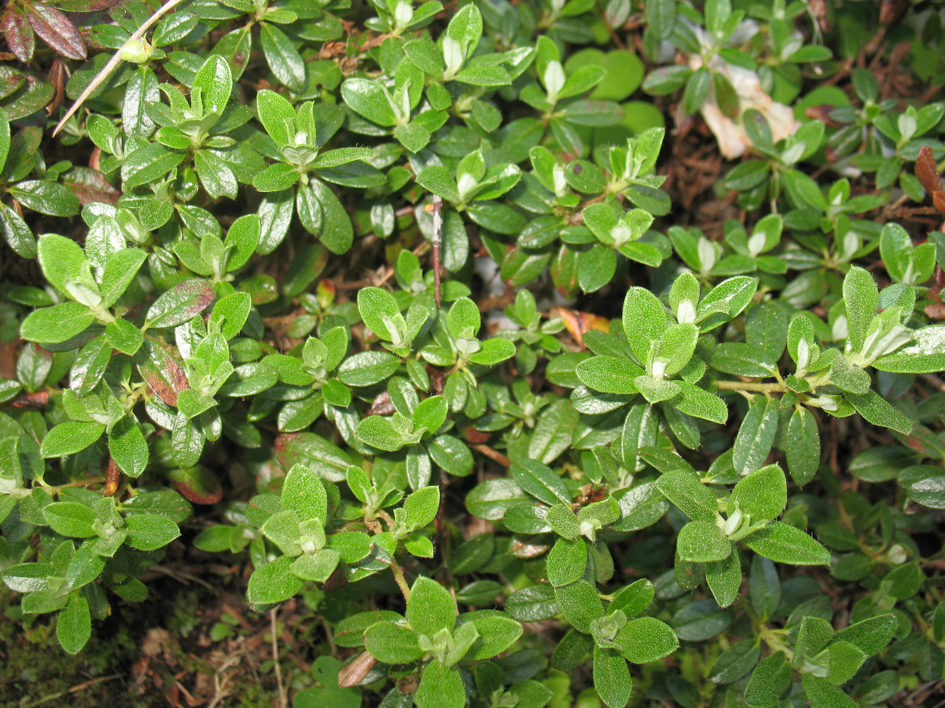 Morfoloģija. Mūžzaļš, ložņājošs pundurkrūms. Pārsvarā izaug 0,1-0,3 m augsts. Lapas ļoti sīkas, otrādi olveida līdz eliptiskas, 1,5cm garas un 1cm platas, olīvzaļā krāsā, kailas ar skropstainām malām, apakšpusē zvīņainas, ar izteiktu aromātu. Ziedi dzinumu galos pa 1-3, plati piltuvveida, purpurvioleti ar tumšāku plankumu, 2,5 cm plati. Zied jūnijā - jūlijā.