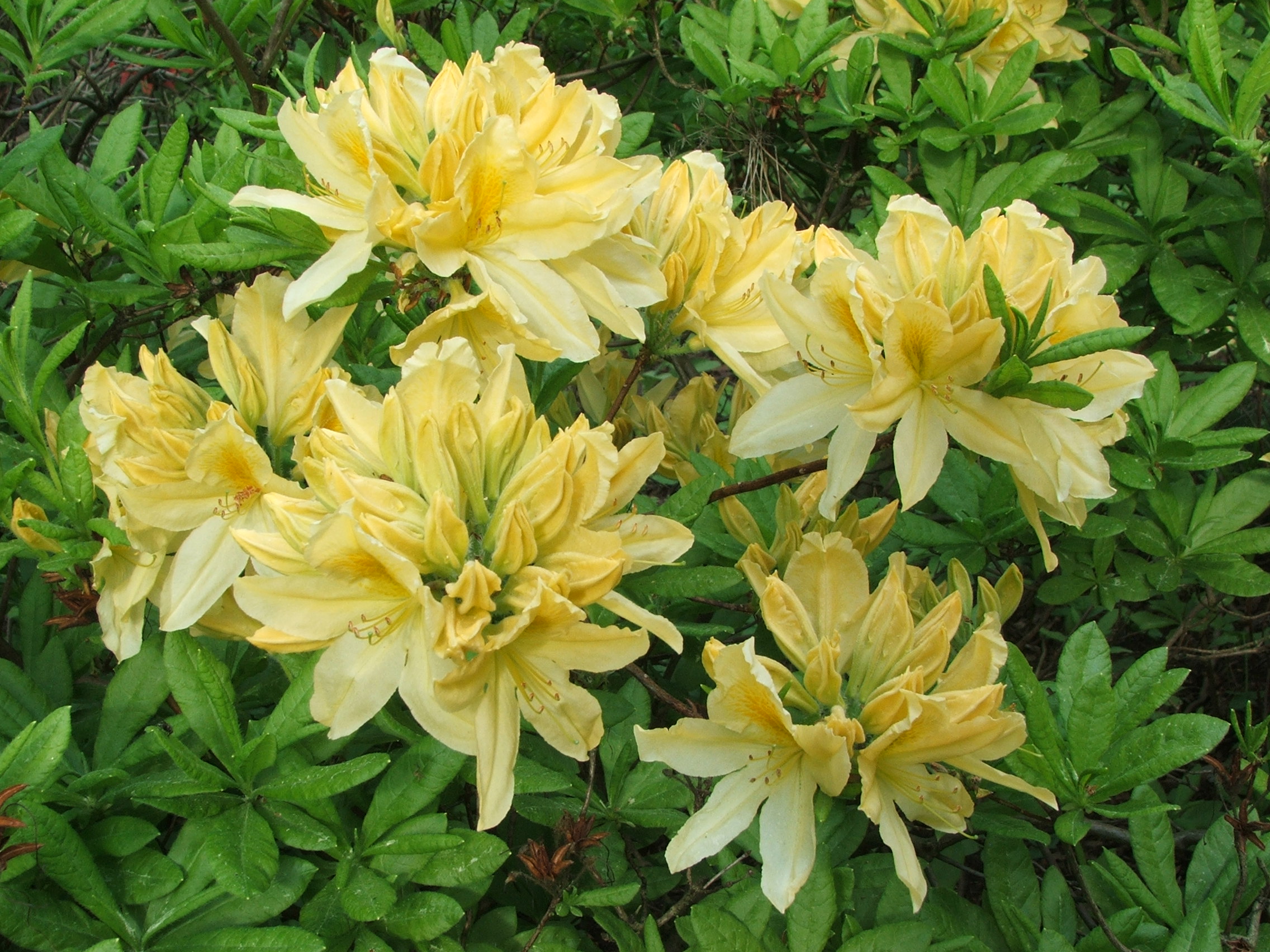 Morfoloģija. Vasarzaļš krūms. Pārsvarā izaug 1-3 m augsts. Jaunie dzinumi pūkaini, bet mēdz būt arī saraini. Pumpuri pelēcīgi, samtaini. Lapas iegareni lancetiskas ar ķīļveida pamatni, 5-15 cm garas un 2-7 cm platas, virspusē matainas, apakšpusē blīvi klātas ar pelēcīgiem matiņiem, kas rada iespaidu, ka lapas ir pelēkzilas. Ziedi daudzskaitlīgi, sakārtoti ziedkopās, zvanveida, zeltaini dzelteni ar zaļganiem punktiņiem, līdz 6cm gari un plati. Uzzied pirms lapu plaukšanas vai reizē ar to, maijā-jūlijā.