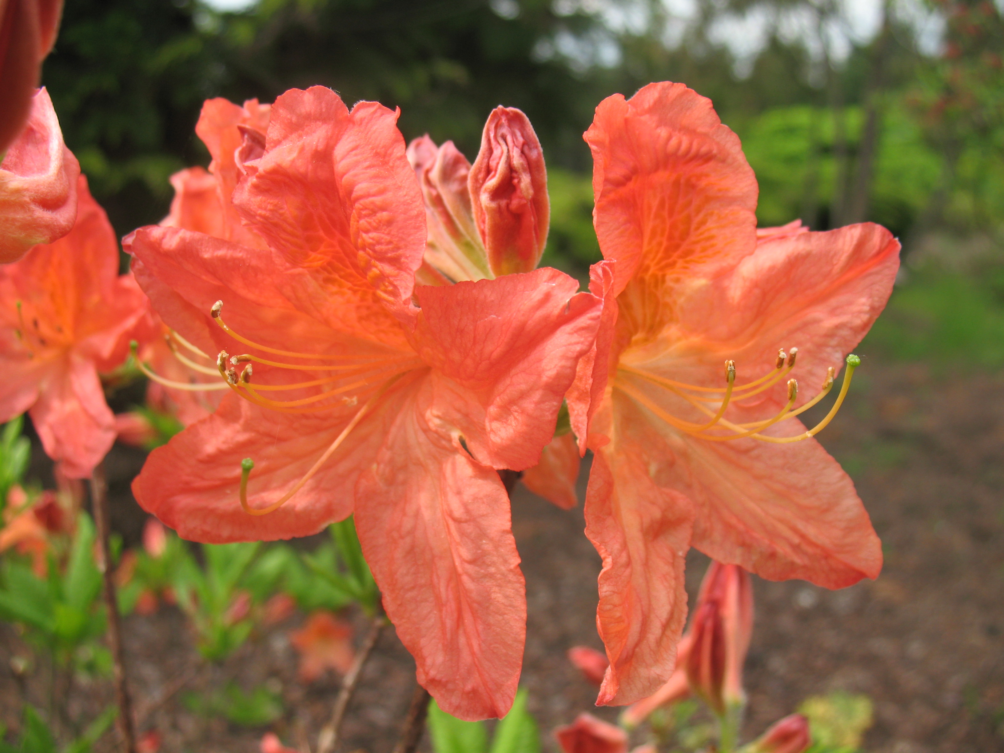 Morfoloģija. Vasarzaļš krūms. 20 gados sasniedz 2 m augstumu un 3 m platumu. Lapas zaļas, eliptiskas, līdz 10 cm garas un līdz 4 cm platas, plaukst ziedēšanas laikā. Ziedi plati piltuvveida, ļoti lieli, 7,5-10cm diametrā, šarlaksarkani ar dzeltenu lāsojumu. pa 8-9 sakārtoti 13 cm platās, lielās ziedkopās. Zied maijā - jūnijā.