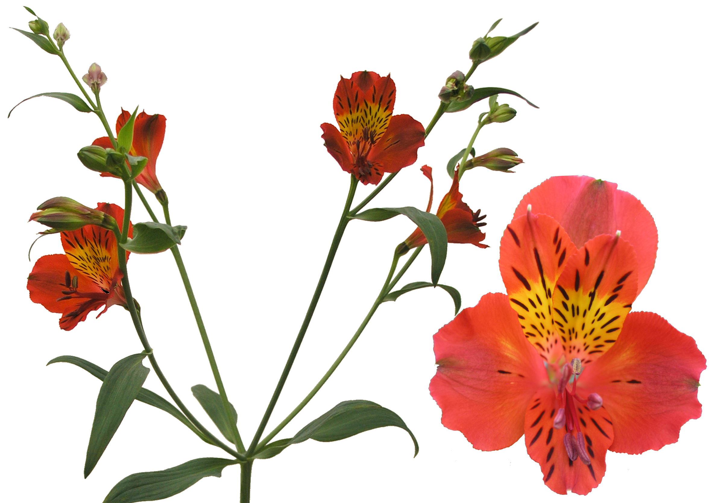 Morfoloģija. Augi ap 100 cm augsti, stublāji cilindriski, stāvi. Lapas lancetiskas spirāliski sakārtotas ap stublāju. Lapu kātiņi sagriezti par 180 grādiem. Čemurveidīgā ziedkopā pieci 19 cm gari kāti ar 3-4 ziediem katrā. Zieds ir vainagveida apziednis sarkanā krāsā. Iekšējās sānu apziedņlapas ar dzeltenas krāsas laukumu plātnes centrālajā daļā un tumšu lāsojumu pa visu plātni.