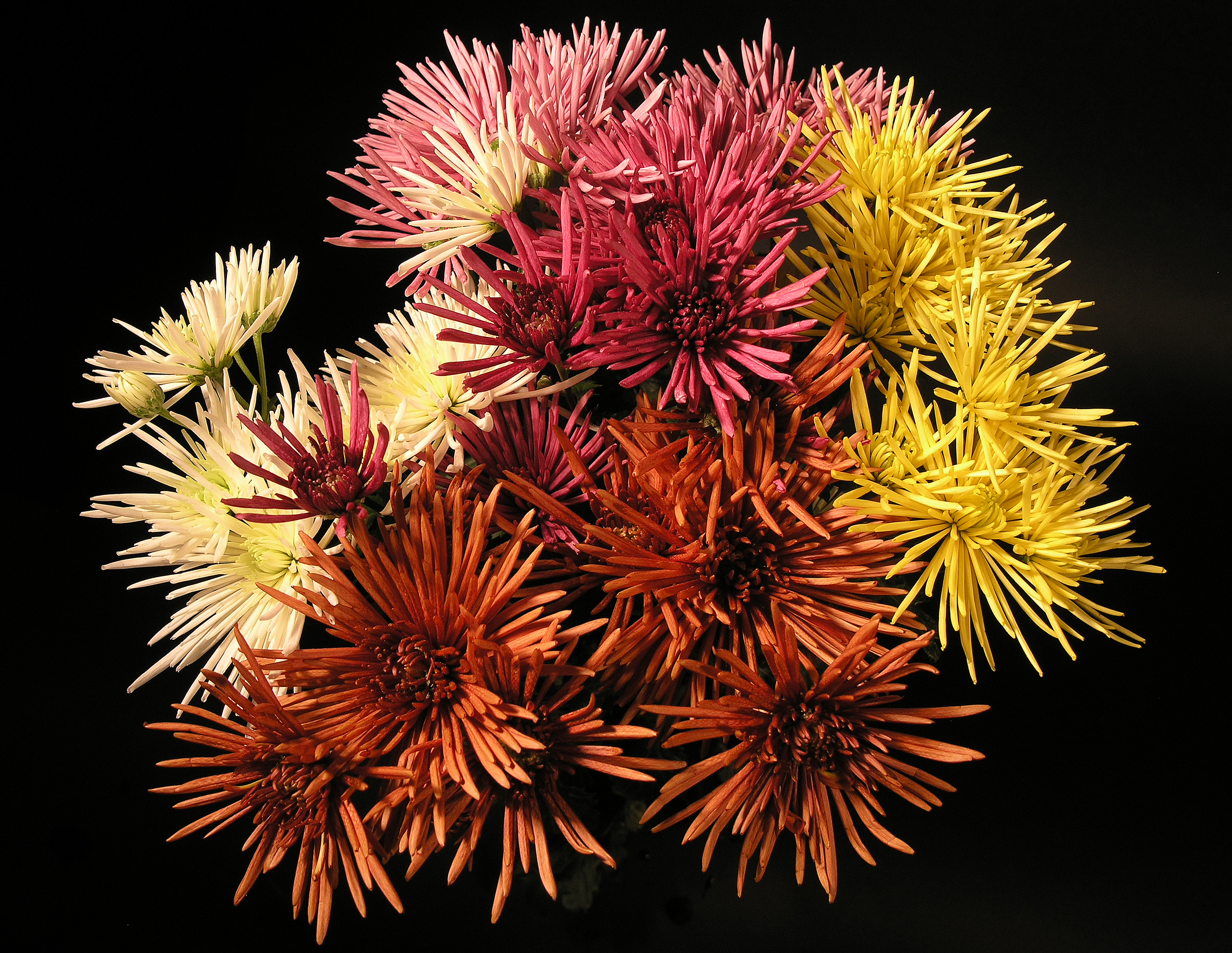Morfoloģija. Daudzgadīgs īsās dienas lakstaugs ar bārkšveida sakni. Augums augsts, 110-130 cm, stublāji tumši, noturīgi, maz zaroti. Lapas nelielas spirāliski, skraji ap stublāju. Grupā ietilpst šķirnes ar baltām, dzeltenām, oranžām, rozā un violetām starveida 8-9 cm lielām ziedkopām. Mēlziedi tievi, saauguši dažāda garuma stobriņos, ziedkopas ārējās rindās ievērojami garāki kā centrālajā daļā.