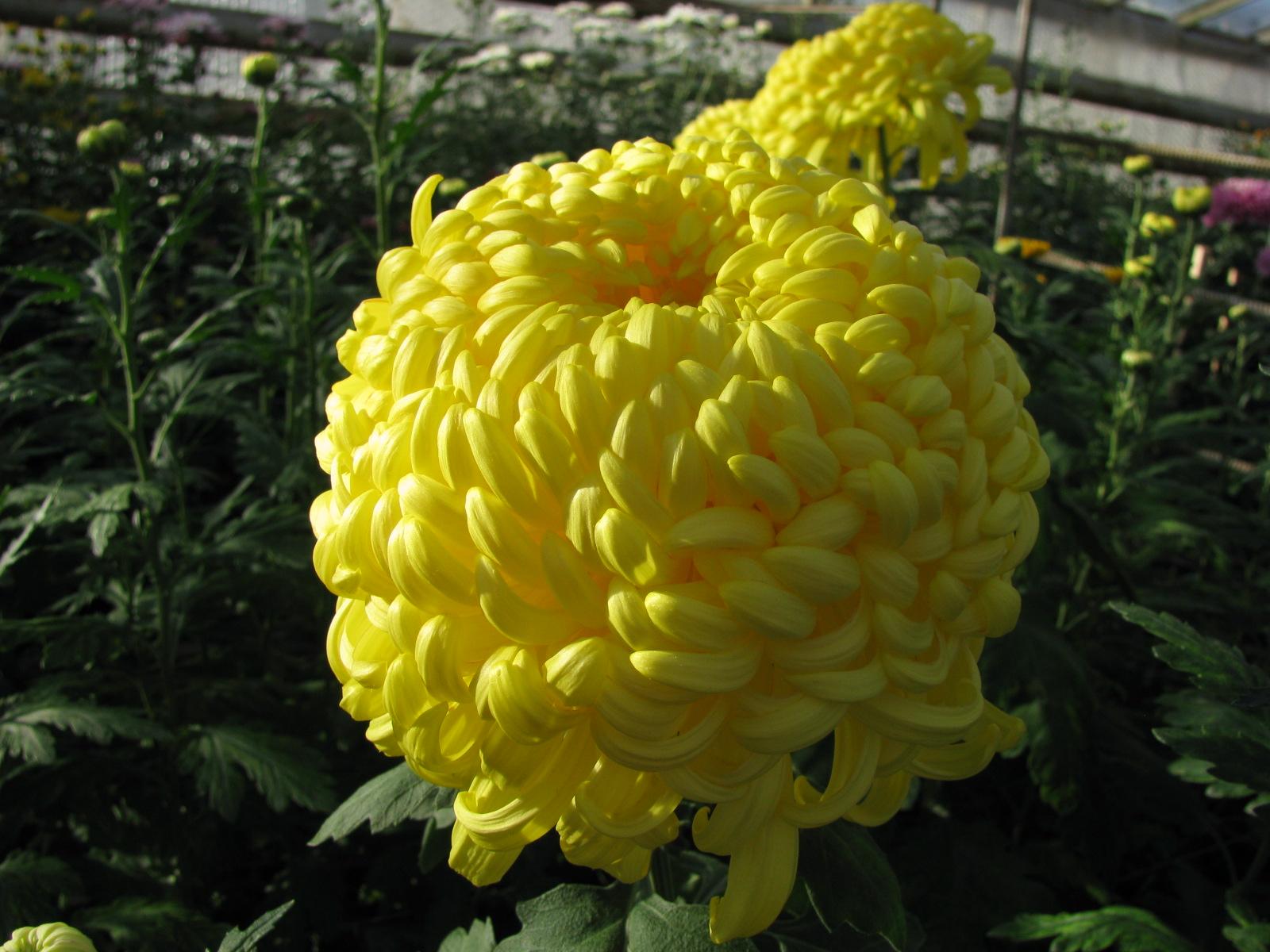 Morfoloģija. Daudzgadīgs īsās dienas lakstaugs ar bārkšveida saknēm. Augums 100-110cm, lapas lielas, izvietotas cieši. Ziedkopas dzeltenas, diametrs 16-17 cm, lodveida, mēlziedi laiviņveida, plati.