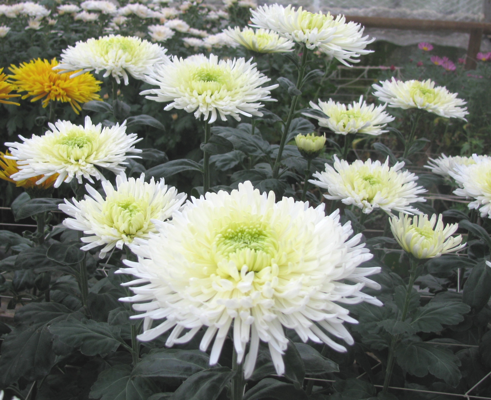 Morfoloģija. Daudzgadīgs lakstaugs ar bārkšveida sakni. Augu augstums 90-110 cm, stublāji tievi, noturīgi. Lapas nelielas tumši zaļas, izvietotas spirāliski, vidēji cieši. Ziedkopas baltas, plakanas, 13-14,5 cm lielas, mēlziedi lentveida.