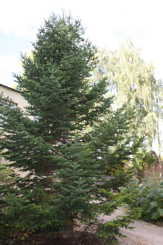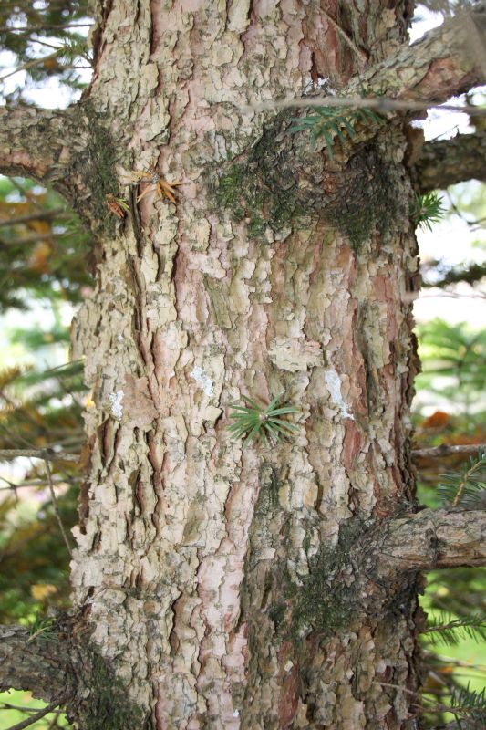 Morfoloģija. Vainags ir biezs, un tam ir plata konusa forma. Miza ir pelēka jauniem kokiem, bet vecākiem kokiem kļūst tumšāka un brūnāka, kā arī nedaudz plēkšņaina. Jaunie dzinumi ir dzeltenbrūni, pūkaini un dzīsloti. Skujas ir asas, plakanas, 2,5-4 (5) cm garas, ar diviem sveķu kanāliņiem. Vīrišķās ziedkopas ir 10-15 mm garas, rūsganas. Čiekuri ir 8-12 (14) cm gari, ar 2,5-4 cm diametru. Tie ir zaļi vai purpurzaļi, bet nogatavojušies – gaiši brūni, sveķaini, un sēklzvīņa nav redzama. Sēklas ir 7-10 mm garas. Sēklas spārns ir 1,5 reizes garāks par sēklas miziņu.