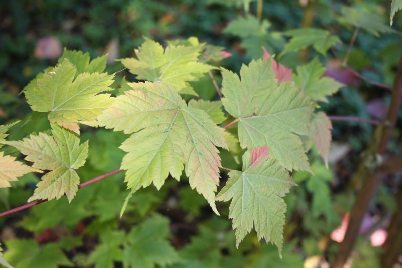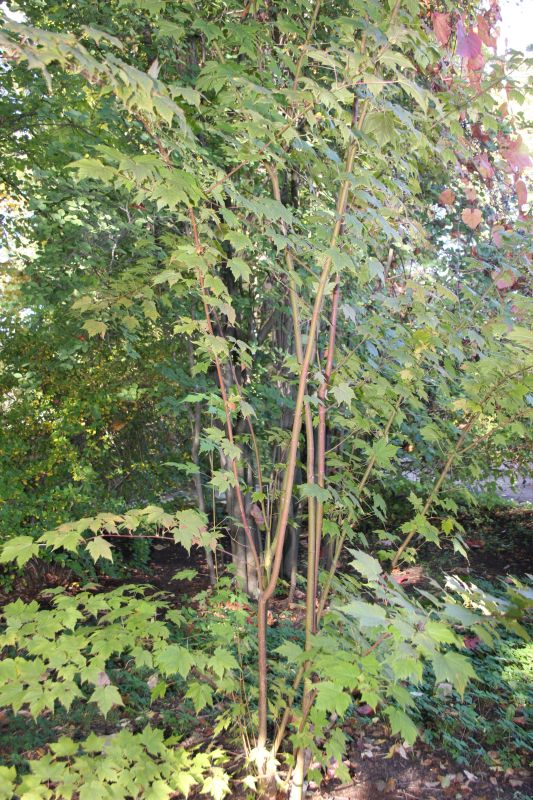 Morfoloģija. Jaunu koku miza ir zaļa un ar svītrām. Jaunie dzinumi ir zaļi vai dzeltenzaļi. Lapas ir zaļas, plānas, sirdsveida vai apaļas. Tās ir 5-10 cm garas un 4-9 cm platas, ar 3-5 daivām. Apakšpusē izteikti mataina, bet virspuse mataina reti. Daivu gali smaili, bet malas zāģzobainas. Daivu sīkāku dalījumu grūti saskatīt. Kātiņš ir sarkans, 2,5 –6 cm garš. Ziedi sakārtoti vairogos pa 4-6, kātiņi ir mataini. Lapas parādās pirms ziedēšanas. Augļi – spārnuļi – ir pāros, 3,5 cm gari, savienoti platā leņķī.