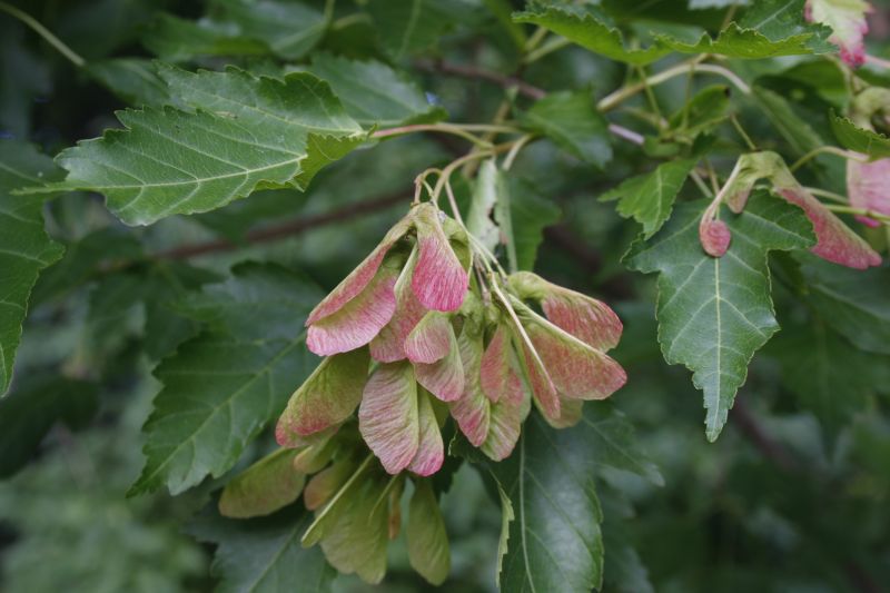 Morfoloģija. Vainags ir plašs un gandrīz sasniedz zemi. Miza ir tumši pelēka, gandrīz melna, gluda. Dzinumi smalki, sarkani, rievaini un, kamēr jauni, ar matiņiem. Lapas ir spīdīgas un zaļas virspusē, bet apakšpuse ir gaiši zaļa. Lapu garums 6-10 cm, platums 3-7 cm. Lapu mala zāģzobaina. Lapu apakšpuse nedaudz mataina. Lapu kāts 3-5 cm garš, ar matiņiem. Lapas rudenī dzeltē. Zaļie, smaržīgie ziedi sakārtoti nelielās skarās un ir viendzimuma vai divdzimumu. Ziedi parādās pēc koka pilnīgas salapošanas. Sēklām ir spārni, kas sākumā ir sarkani. Tie ir 3-4 cm gari. Spārni savienoti šaurā leņķī, un tiem ir matiņi.