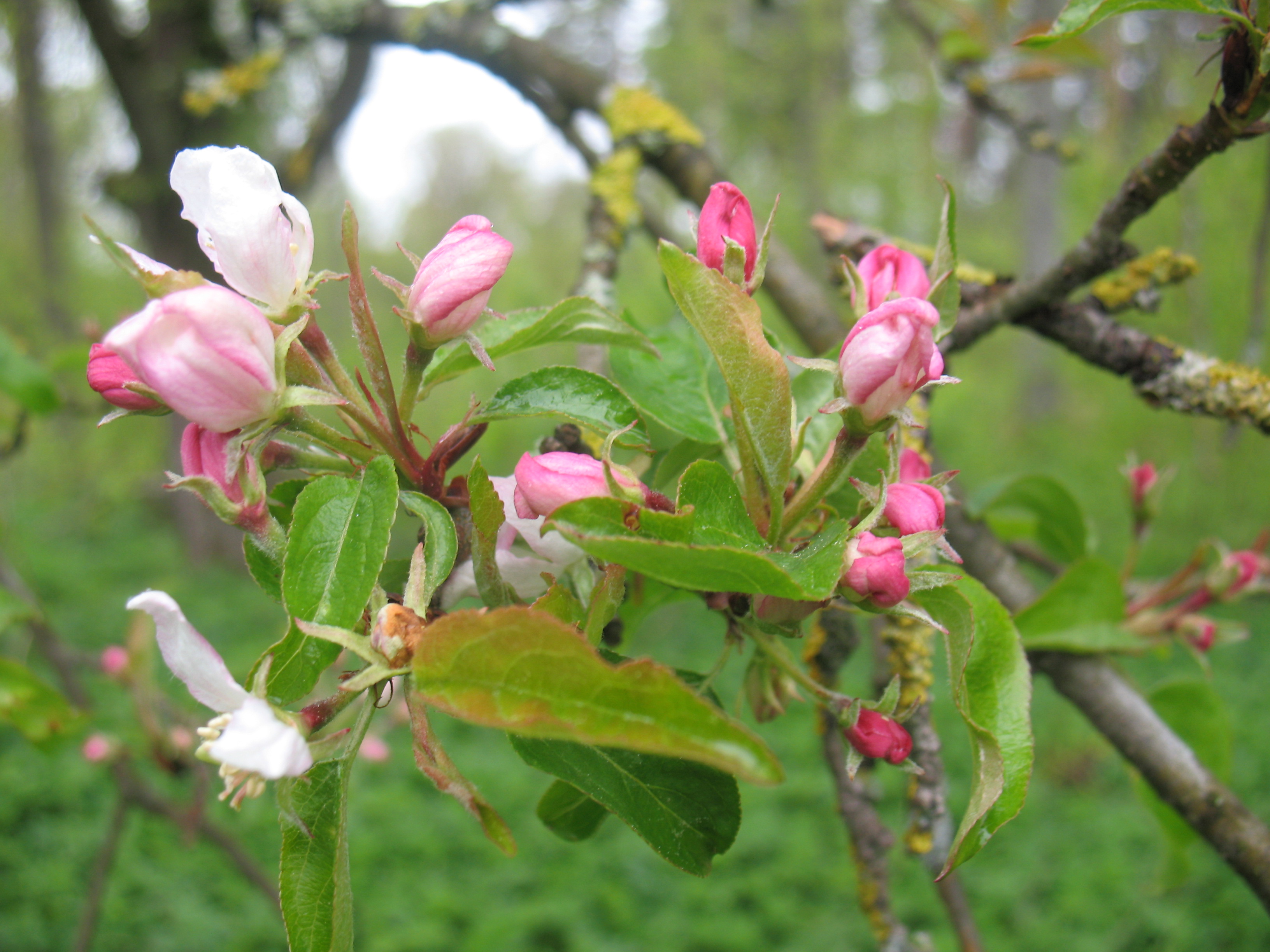 Morfoloģija. Vasarzaļš, 2 – 10 m augsts krūms vai koks ar platu vainagu. Miza pelēcīga, plaisā. Daudzgadīgie zari brūni līdz iedzelteni ar nelieliem horizontāliem sānzariem, kuru galos ir pumpuri vai ērkšķi. Uz 2 – 4 gadīgiem zariem saskatāmas sīkas, pelēcīgi brūnas lenticeles. Jaunie dzinumi olīvzaļi vai tumši brūni, parasti kaili. Lapas dažādi ieapaļas, malas zobainas, jaunas ar tūbainiem matiņiem, bet vēlāk gandrīz kailas. Virspusē koši zaļas, zaigojošas, apakšpusē bāli zaļas, matētas, 2 – 3 cm garas u 2 – 5 cm platas. Lapas kātiņi īsi, sākumā ar irdeni tūbainiem matiņiem, vēlāk gandrīz kaili. Ziedi balti vai rozā, nelielās ziedkopās īsvasu galos, 3 cm plati, zied maijā. Augļu forma, krāsa, garša, kā arī ienākšanās neviendabīga. Āboli 2 – 4 cm plati, parasti dzeltenzaļi ar sārtu vaidziņu, rūgti un sīvi.