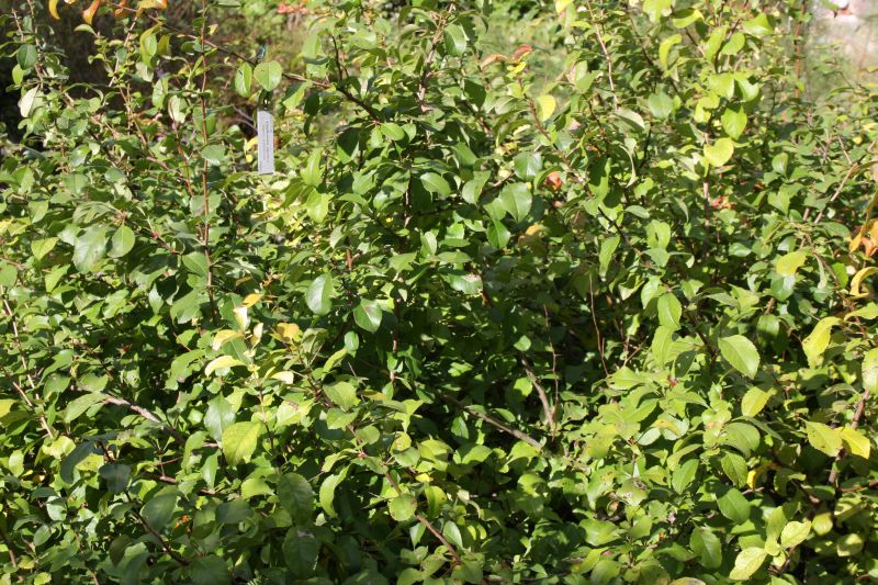 Morfoloģija. Jaunie dzinumi ar matiņiem. Zari ir tumši brūni, ar ērkšķiem un izaugumiem. Vecāki zari kļūst pelēcīgāki. Lapas zaļas, virspusē tumšākas, 3-5 cm garas, ovālas vai otrādi olveida, ādainas, ar smailu vai noapaļotu galu, malas nedaudz zobainas. Tām ir lielas nierveida vai sirdsveida pielapes, kas paliek līdz rudenim. Lapas kāts 1-1,5 cm garš. Ziedi oranži, 5 cm gari, īsos ķekaros pa 2-6. Zied maijā – jūnijā. Augļi līdzīgi āboliem, apaļi vai iegareni, 3-4 cm diametrā, zaļi vai dzelteni.