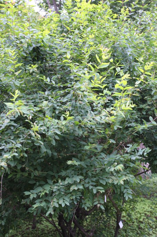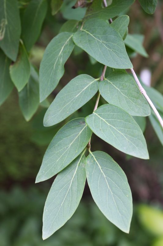 Ekoloģija. Stāvus krūms vai koks ar gludu, pelēcīgi brūnu, dobu stumbru, kas var sasniegt 3 - 4 m augstumu. Dzīvo 60 - 80 gadus. Lapas virspusē tumši zaļas, apakšpusē gaišākas, forma olveida vai lancetiska, 3 - 6 cm garas un 1,5 - 3 cm platas. Lapas pamatne taisna vai sirdsveidīga. Lapas kāts ir līdz 5 mm garš. Ziedi ir variē no baltas līdz tumši rozā krāsai, sakārtoti pa 2 vai čemuros uz 1 - 2 cm gariem ziedkātiem, to diametrs līdz 2 cm. Zied maijā un jūnijā. Augļi gaiši sārti, retāk dzelteni, parasti sastiprināti pa pāriem vai vairāki kopā veido sfērisku formu.