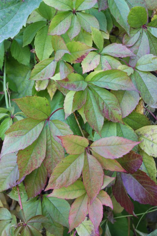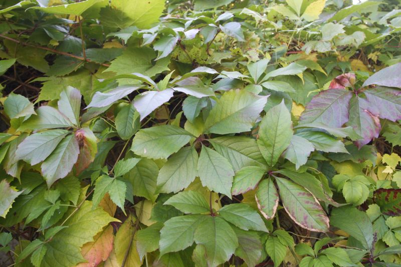 Morfoloģija. Jaunie dzinumi ir zaļi, bet vēlāk tiem uzaug pelēka miza. Lapas staraini saliktas no piecām lapiņām, kas ir nelielas, 3-5 cm garas, eliptiskas, ar smailu galu. Lapas ir zaļas, rudenī karmīnsarkanas. Ziedi zaļganbalti, sakopoti skarās. Zied no jūnija līdz augustam. Augļi apaļi, zilganmelni, ar vāju apsarmi. To diametrs 0,5-0,8 cm.