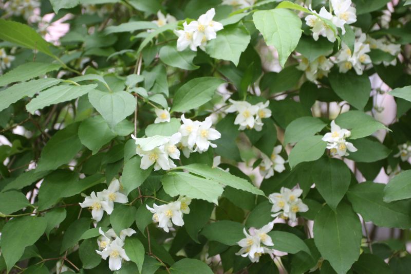 Morfoloģija. Vainags apaļš, dzinumi noliekti pret zemi. Vecākie dzinumi ir pelēcīgi brūni, purpura krāsā, līdz brūniem, mataini. Lapas tumši zaļas, iegarenas, 5 cm garas, abas puses ir matainas. Lapas kāts 5-10 mm garš. Ziedi balti, ar 4 vainaglapām, 4,5 cm diametrā, ziedkopās pa 5-7 (11), smaržīgi. Zied jūlijā. Augļi – 7-9 mm garas un 4-7 mm platas pogaļas.