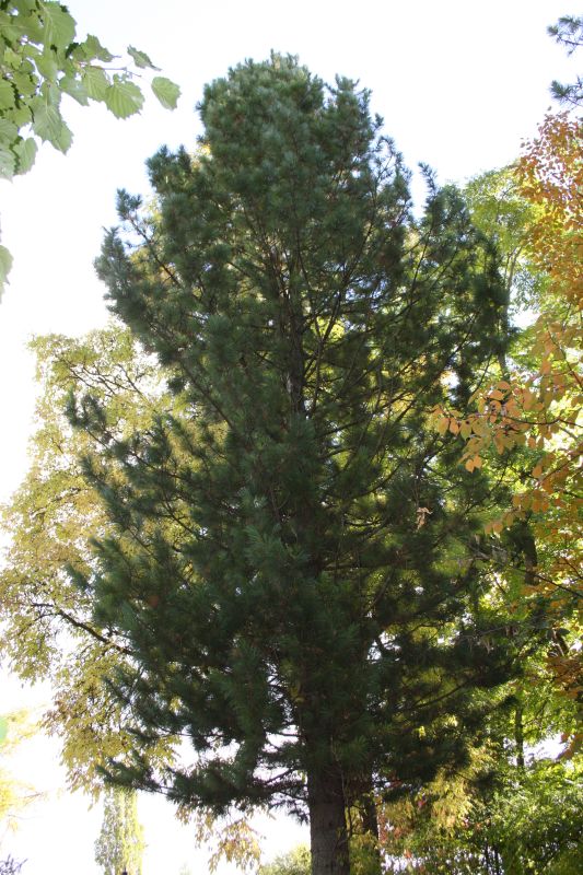 Morfoloģija. Miza ir zaļgani pelēka, gluda, kas koks ir jauns, bet, kokam kļūstot vecākam, tā kļūst brūngani pelēka, zvīņveida, rievaina. Jauniem kokiem vainags šauri konisks, bet vēlāk cilindrisks vai ovāls, apaļš, biezs, dažreiz asimetrisks. Dzinumi stingri, brūngani dzelteni, ar rūsaini brūnu tūbojumu, kamēr jauni, bet vēlāk brūngani pelēki. Matiņi uz dzinumiem paliek 3-4 gadus. Skujas ir 5-9 cm garas, ar asu galu, dzeltenas, spīdīgas, tumši zaļas virspusē. Divās pusēs ir balta atvārsnīšu līnija, kas klāta ar vasku. Malas pareti zobainas. Čiekuri strupi olveida, dažreiz līki, asimetriski, 5-8 cm gari un 4-5 cm plati. Jauni – purpurvioleti, vēlāk violeti brūni. Sēklas segzvīņa ir bieza, koksnaina. Tās redzamā daļa ir trīsstūraina vai plati lokveida. Sēklas ir olveida, brūnas, 0,8-1,2 cm garas un 0,6-0,7 cm platas. Tām nav spārna un ir ciets apvalks.