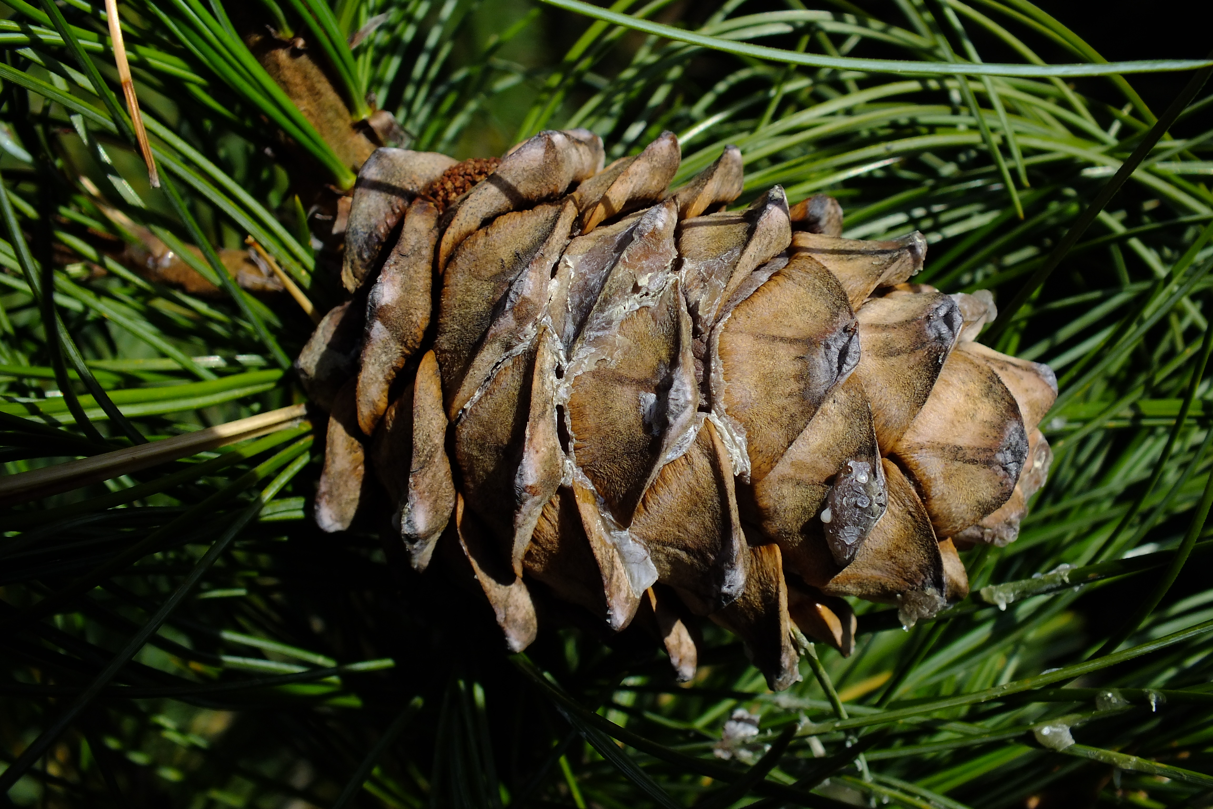 Morfoloģija. Jaunu koku vainagam ir šaura konusa forma, bet vecākam kokam tas ir biezs, izpleties un var būt ar daudziem pušķiem. Dzinumi resni, biezi noklāti ar brūniem matiņiem. Skujas zaļas, (5) 7- 12 (14) cm garas un 8-12 mm platas. Atvārsnīšu rinda uz divām skaldnēm nav uzkrītoša. Nobrieduši čiekuri ir 6-14 cm gari un 5-8 cm plati. Sēklas ir 10-14 mm garas un 6-10 mm platas, brūnas, nedaudz stūrainas.