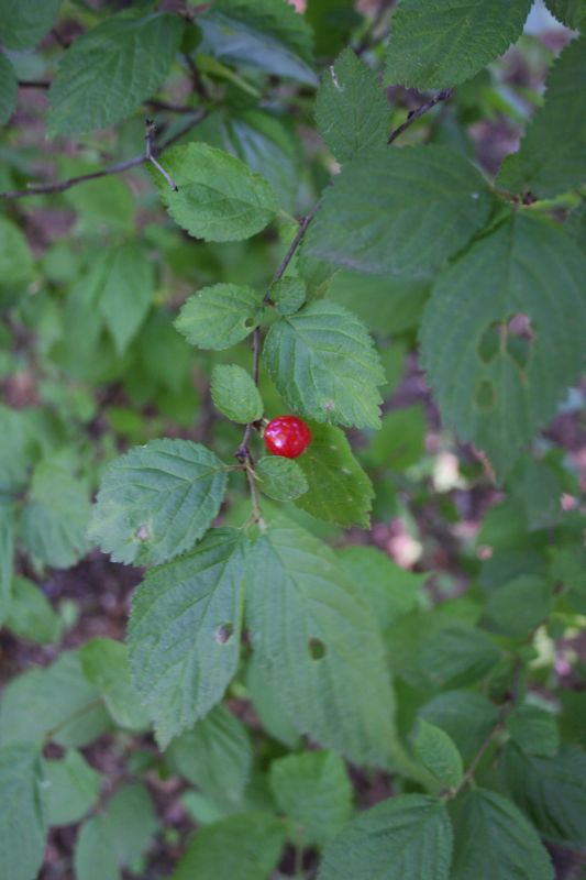 Morfoloģija. Jaunie dzinumi tūbaini. Lapas pelēcīgi zaļas virspusē, 3-5 cm garas un 2-3 cm platas, Plati eliptiskas līdz otrādi olveida, krokainas dzīslu tuvumā, īsu smailu galu Lapu virspuse ir mataina, bet apakšpuse tūbaina. Lapas kāts 0,5-0,7 cm garš, matains. Ziedi sārti balti, pa 1-3 ziediem kopā, zieda diametrs ir 1,5-2 cm. Zied pirms salapošanas. Augļi koši sarkani, apaļi, līdz 1,8 cm plati.