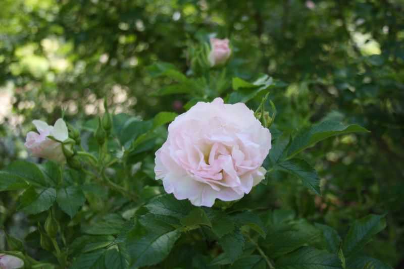 Morfoloģija. Krūms piramidāli izplests, biezi zarots, kompakts, līdz 2,0 m augsts, dzinumi biezi klāti ar lieliem un sīkiem dzeloņiem. Lapas vidēji lielas, tumši zaļas, rievainas, jaunais lapojums smaržīgs. Ziedi maigi rozā ar tumšāku vidu, balo, lieli (7-9 cm), pildīti (20-27 vainaglapas), smaržīgi, pa 5-25 ziedkopā. Sāk ziedēt jūnija vidū un turpina līdz vēlam rudenim.