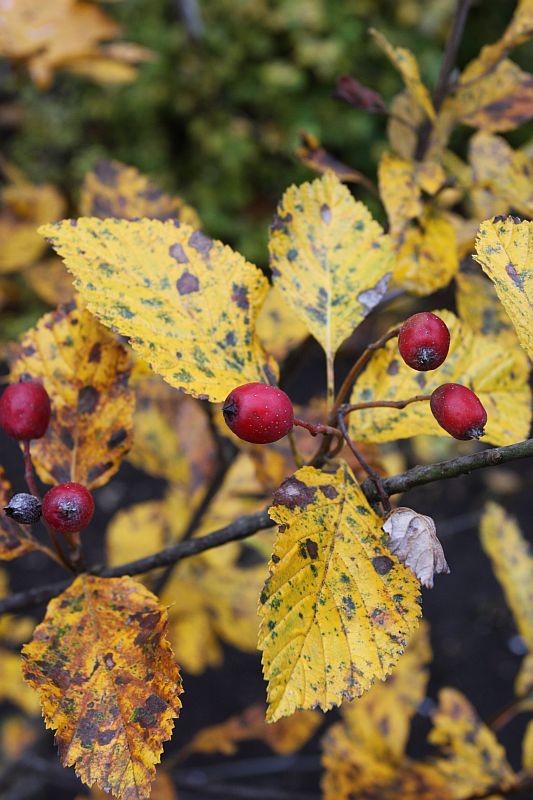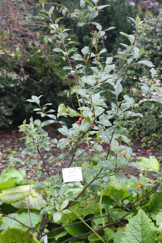 Morfoloģija. Jaunie dzinumi klāti ar baltu tūbainu kārtu, vecākie – kaili, brūni līdz purpura krāsi. Lapas apaļi eliptiskas, veselas, 4-10 cm garas un 3-6 cm platas. Lapas balti tūbainas, bet vēlāk virspuse zaļa, kaila, apakšpuse tūbaina. Lapas mala taisna pie pamatnes, bet citur zobaina. Lapas kāts 1-2 cm garš. Ziedi balti, ar diametru ap 1,5 cm. Sakārtoti vairogveida ziedkopās, 5-8 cm diametrā. Zied maijā- jūnijā. Augļi apaļi ovāli, 1-1,5 cm gari, sarkanīgi vai oranži. Mataini, kamēr jauni.