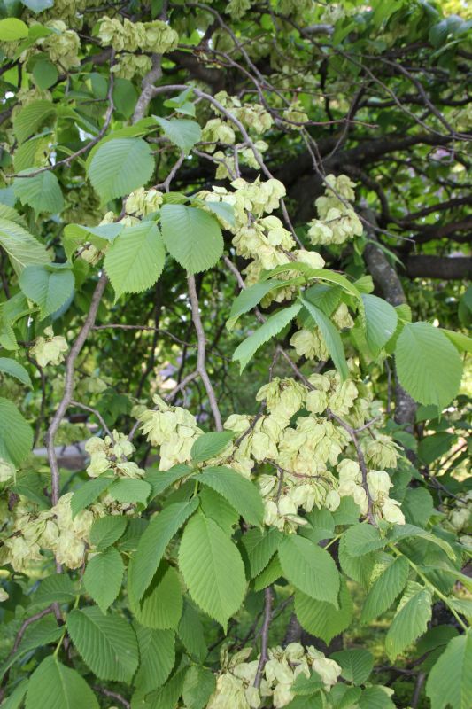 Morfoloģija. Līdz 2 (3) m augsts un 1,5-2 (3-4) m plats vasarzaļš koks. Dzimumi nokareni (sēru forma). Lapas ir tumši zaļas, lielas, ovālas vai otrādi olveida, ar smalki zobainu malu, smailu galu. Lapas bieži novietotas. Ziedi zaļi.