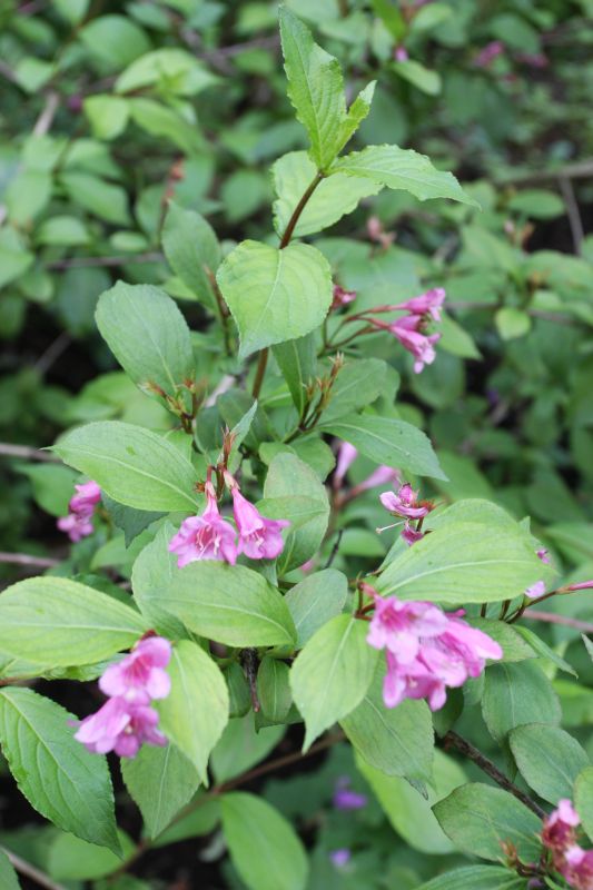Morfoloģija. Vasarzaļš, izplests krūms, 1-1,5 (3) m augsts. Jaunie dzinumi ir sarkanīgi, augstākie ir mataini. Lapas dzeltenzaļas, eliptiskas līdz olveida, reti otrādi olveida, 3-6 cm garas, gals smails, virspuse viegli mataina, apakšpuse cieši noklāta ar matiņiem. Ziedi balti vai iezaļgani, vēlāk gaiši karmīnsarkani, zvanveida, līdz 3 cm gari, parasti pušķos pa 3. Zied jūnijā. Sēklas ar spārniem.
