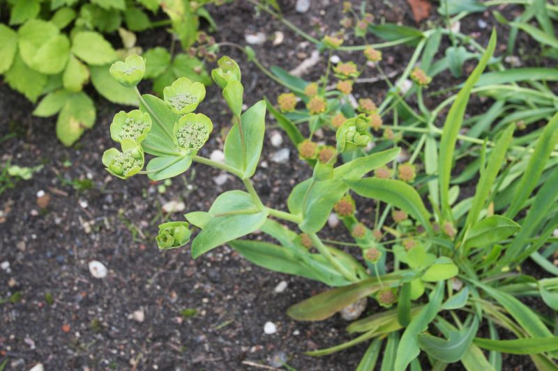 Morfoloģija. Daudzgadīgs augs, līdz 50 cm augsts. Lapas zilganzaļas. Pie saknēm tās ir lineāras līdz lancetiskas, ar kātu. Lapas pie stumbra ir sirdsveida. Ziedi zaļganā krēmkrāsā, 1 cm platā čemurā, kuru apņem 4-6 iegarenas, pelēkzaļas vai dzeltenīgas vīkallapas. Zied no vasaras sākuma līdz vasaras beigām. Auglis – dvīņkarulis.