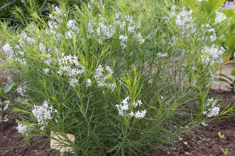 Morfoloģija. Stumbri nedaudz saliekti vai taisni. Lapas gaiši zaļas, rudenī zeltaini dzeltenas, veselas, ļoti šauras, dzīslainas. Ziedi bāli zili, zvaigžņveida, diametrs ap 1,3 cm, ziedkopās stumbru galos. Zied maijā – jūnijā.