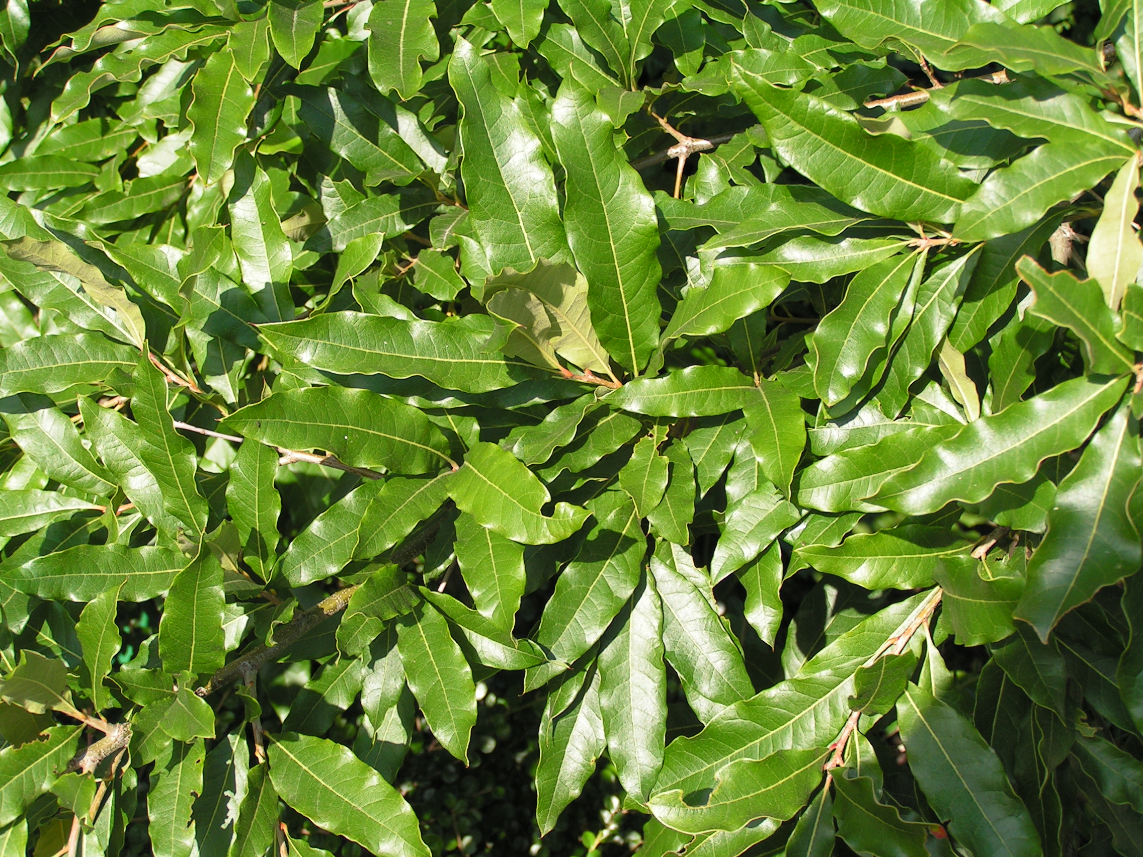 Morfoloģija. Vasarzaļš, līdz 20 m augsts koks ar plati piramidālu vainagu un nedaudz nokareniem zariem. Miza gluda. Dzinumi sākumā tūbaini, vēlāk kaili, tumši brūni. Lapas kātiņš ap 2 cm garš. Lapas plati lancetiskas, eliptiskas vai otrādi olveidīgas, veselas, ar viļņainām malām, nedaudz ieritinātas. Spēcīgāko dzinumu lapas galotnē trīsdaivainas. Lapas virspusē spīdīgas, tumši zaļas, apakšpusē brūni tūbainas, 10-15 cm garas. Augļi pa 2-3 uz īsiem, resniem kātiņiem, zīles līdz 1,5 cm garas, gandrīz apaļas. Augļa vīkals līdz pusei ieskauj zīli, klāts ar lancetiskām, gaiši brūnām matainām zvīņām.