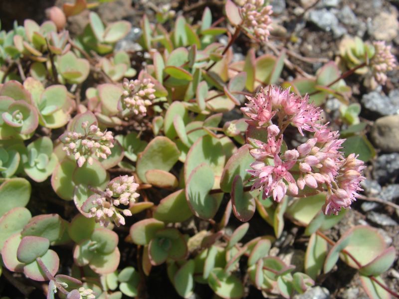 Morfoloģija. Stumbri izliekušies, pacilus, apakšējā daļā koksnaini. Lapas pretējas, veselas, zilgani zaļas, gaļīgas, apaļas līdz iegareni olveida, sēdošas, aptver stumbru. Ziedi tumši sārti, puslodes veida ciešās ziedkopās stumbru galos. Zied augustā –septembrī.