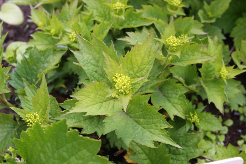 Morfoloģija. Stumbri stāvi. Lapas zaļas, zeltaini dzeltenas rudenī, līdz 15 cm garas, plati ovālas, ar zobainu vai daivainu malu. Ziedi dzelteni, sīki, ziedkopās stumbru galos, līdz 10 cm diametrā. Zied jūnijā –augustā.