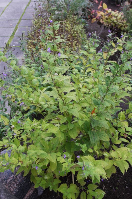 Morfoloģija. Stumbri stāvi, kantaini, zālaini, gandrīz kaili. Lapas zaļas, veselas, pretējas, iegareni ovālas līdz ovālas, 12-14 cm garas un 1,2-5 cm platas, nedaudz matainas, ar plati ķīļveida līdz apaļai pamatnei, malas zobainas, smails līdz garš gals, 3-5 pāri dzīslu. Lapas saberžot, jūtama to smaržu. Ziedi sārti, lūpveida, vainaga rīklīte 0,8-1,6 cm gara, irbulis un putekšņlapas stiepjas ārā, ziedkopas stumbra mezglos, viegli matainas, to kāts 2-3 (11) cm garš. Zied jūlijā –septembrī. Augļi – bāli riekstiņi.