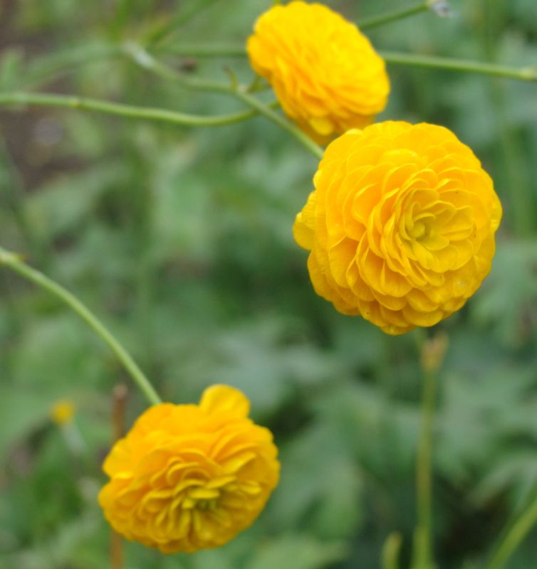 Morfoloģija. Stumbri stāvi, zaļi. Lapas ir tumši zaļas, staraini dalītas, daivas lineāras. Ziedi zeltaini dzelteni. Zied maijā – jūlijā.