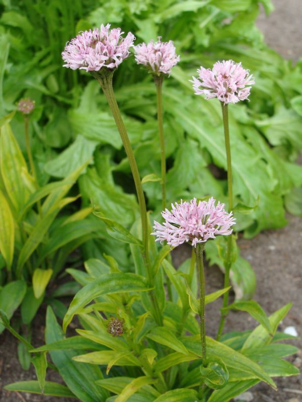Morfoloģija. Lapas tumši zaļas, spīdīgas, pie saknēm. Lancetiskas. Ziedi sārti, cilindriski, sīki, atsevišķos kurvīšos ar 3 cm diametru, 45 cm augstumā kātu galā. Zied jūlijā- septembrī.