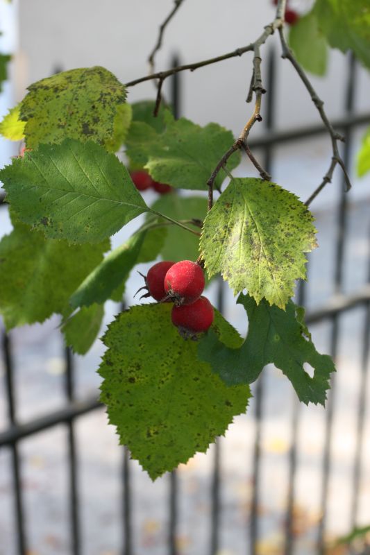 Morfoloģija. Lapas zaļas, eliptiskas līdz olveida, viegli daivainas, 3-6 cm garas un 2-5 cm platas. Jaunas lapas matainas, vēlāk kailas, apakšpuse samtaina, mala zobaina. Lapas kāts 1-3 cm. Ziedi balti, vairogos. Augļi sarkani.