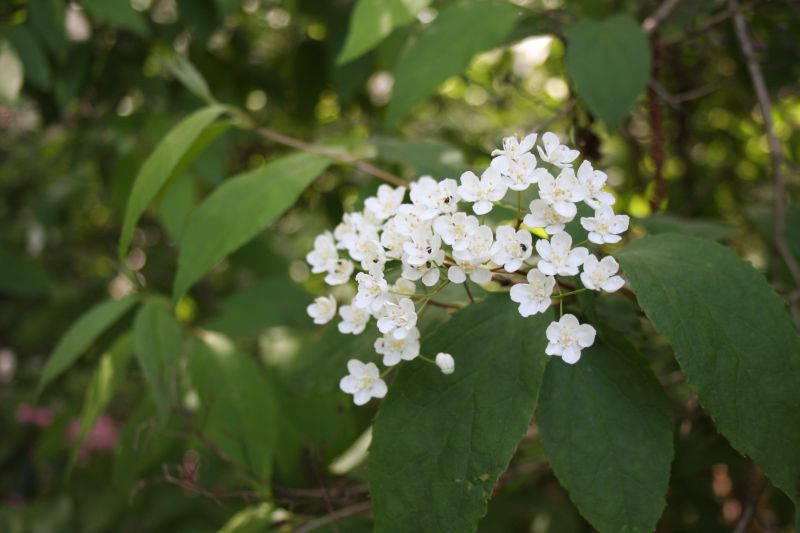 Morfoloģija. Jaunie dzinumi klāti ar zvaigžņmatiņiem, brūngani, bet vecākie dzinumi pelēki. Lapas zaļas, ovāli eliptiskas vai iegareni olveida līdz lancetiskas, kāts īss, 3-6 (10) cm, malas smalkzobainas, gals smails, virspuse ar zvaigžņmatiņiem, apakšpuse kaila. Ziedi balti, līdz 1,2 cm diametrā, vairogos ar daudziem ziediem. Zied jūnijā-jūlijā.