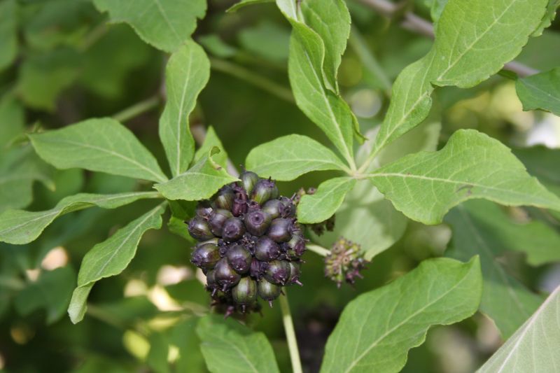 Morfoloģija. Dzinumi klāti ar dzeloņiem. Lapas zaļas, plūksnoti saliktas, lapiņas eliptiskas, ar zobainu malu, smailu galu. Ziedi bāli zaļi, lodveida ziedkopās. Zied jūnijā – jūlijā. Gatavi augļi ir melni.