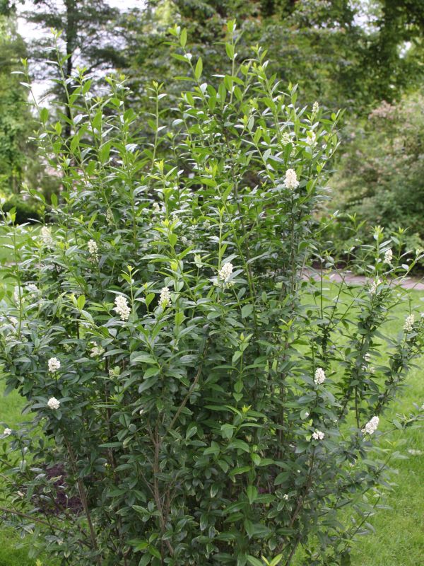 Morfoloģija. Dzinumi pelēcīgi brūni, ar baltām lenticelēm. Lapas virspusē tumši zaļas, apakšpusē gaišākas, lancetiskas, 4-6 cm garas un 0,6-2 cm platas, ar smailu galu un ķīļveida pamatni, ādainas, malas ieritinājušās uz leju. Lapas kāts 0,3-1 cm garš. Lapas paliek pie krūma ilgi un vēlā rudenī bieži ir zaļas vai brūnganas. Apakšējo zaru lapas paliek līdz nākošajam pavasarim. Ziedi balti, smaržīgi, 6-8 cm garās skarās. Zied jūnijā –jūlijā. Auglis ir spīdīga, melna oga ar sulīgu mīkstumu purpura krāsā, ar 1-2 sēklām.