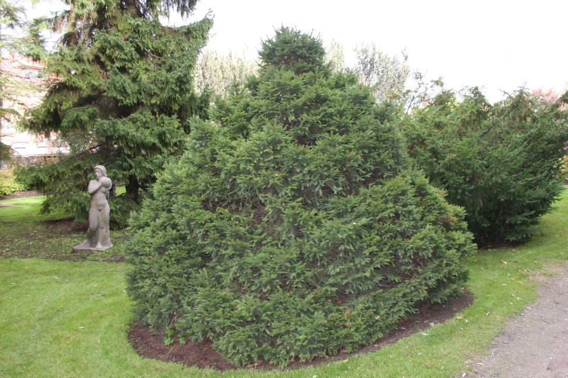 Morfoloģija. Jauns augs sfērisks, vēlāk piramidāls. Skujas zaļas.