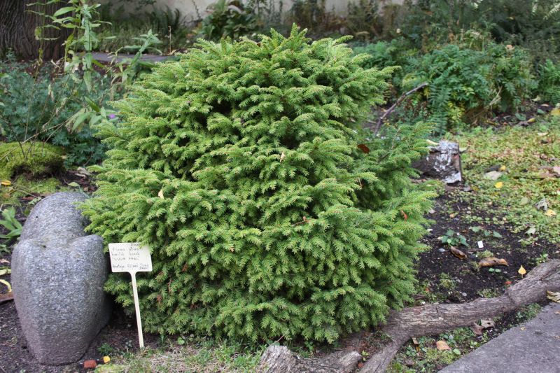 Morfoloģija. Kompakts, biezi zarains. Vainags ieapaļi konusveida. Skujas gaiši zaļas līdz dzeltenzaļas.