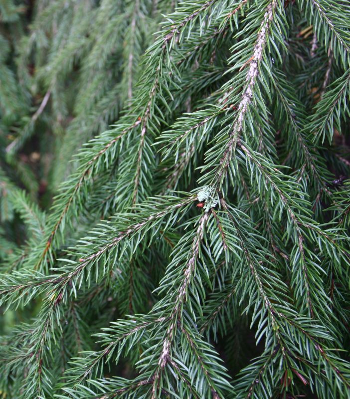 Morfoloģija. Vainags var būt kolonnveida vai konisks. Jaunie zari pret stumbru taisnā leņķī, zemāk zari nokareni. Miza pelēcīgi brūna, plēkšņaina, vēlāk ar krevi. Dzinumi dzeltenīgi brūni un dzeltenbrūni, kaili vai ar matiņiem. Skujas 1,5-2,5 cm garas, zaļas, plakanas ēnā, tievas, atvārsnītes grūti saskatāmas. Čiekuri (5) 7-12 (17) cm gari. Sēklas bāli brūnas, to spārni brūngandzelteni.