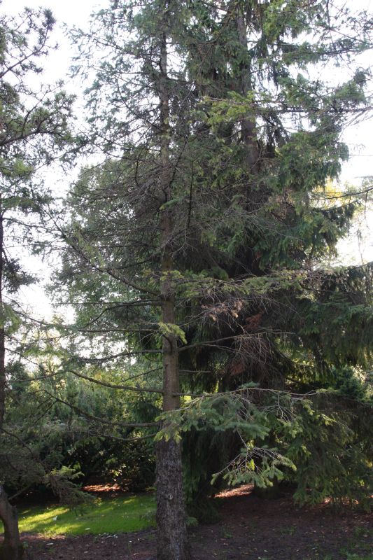 Morfoloģija. Vainaga galotne stipri smaila. Dzinumi gandrīz kaili, Salīdzinot ar Kanādas egli, zari ir garāki un tievāki, un atvērušies čiekuri īsāki un resnāki. Skujas zilgani zaļas.