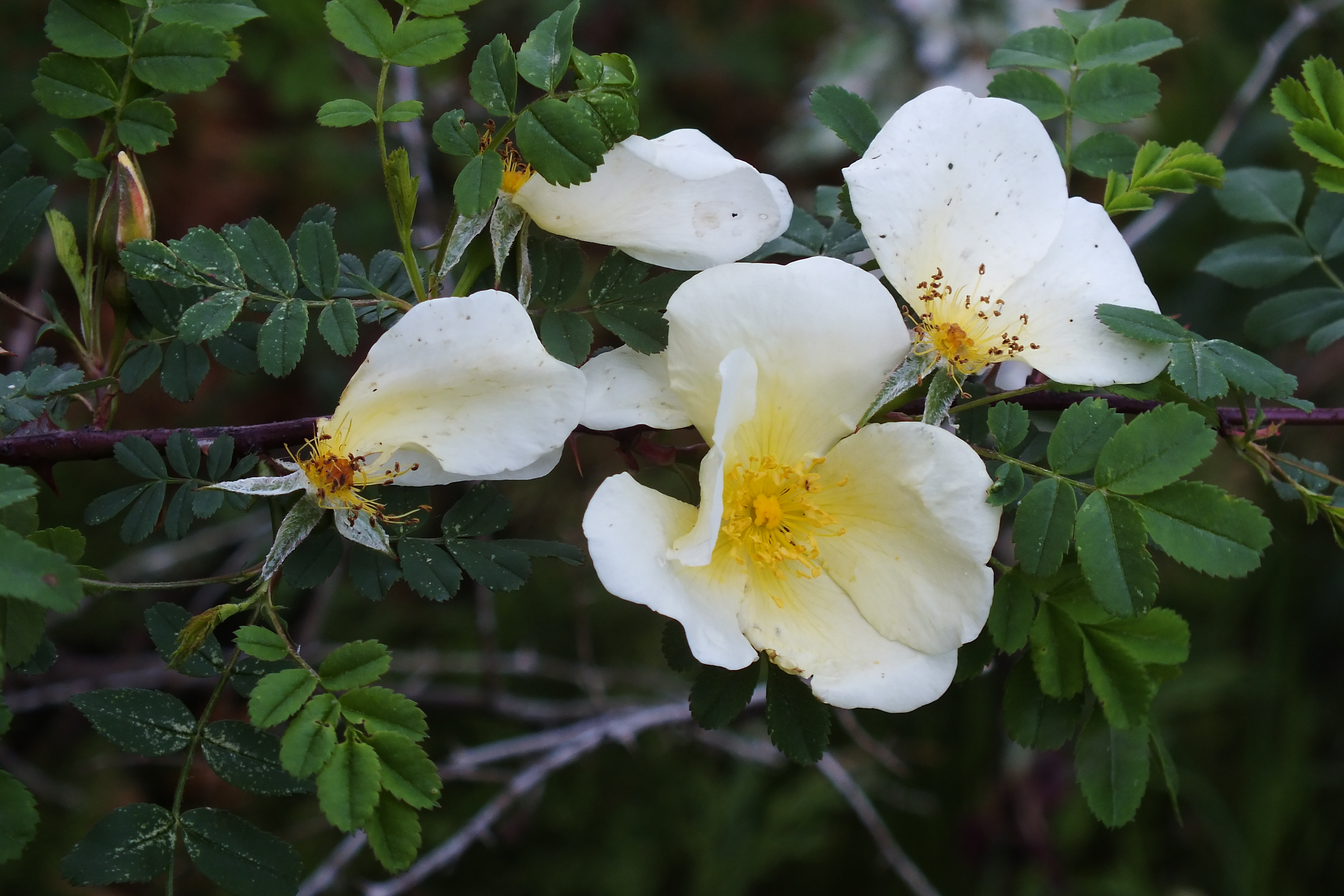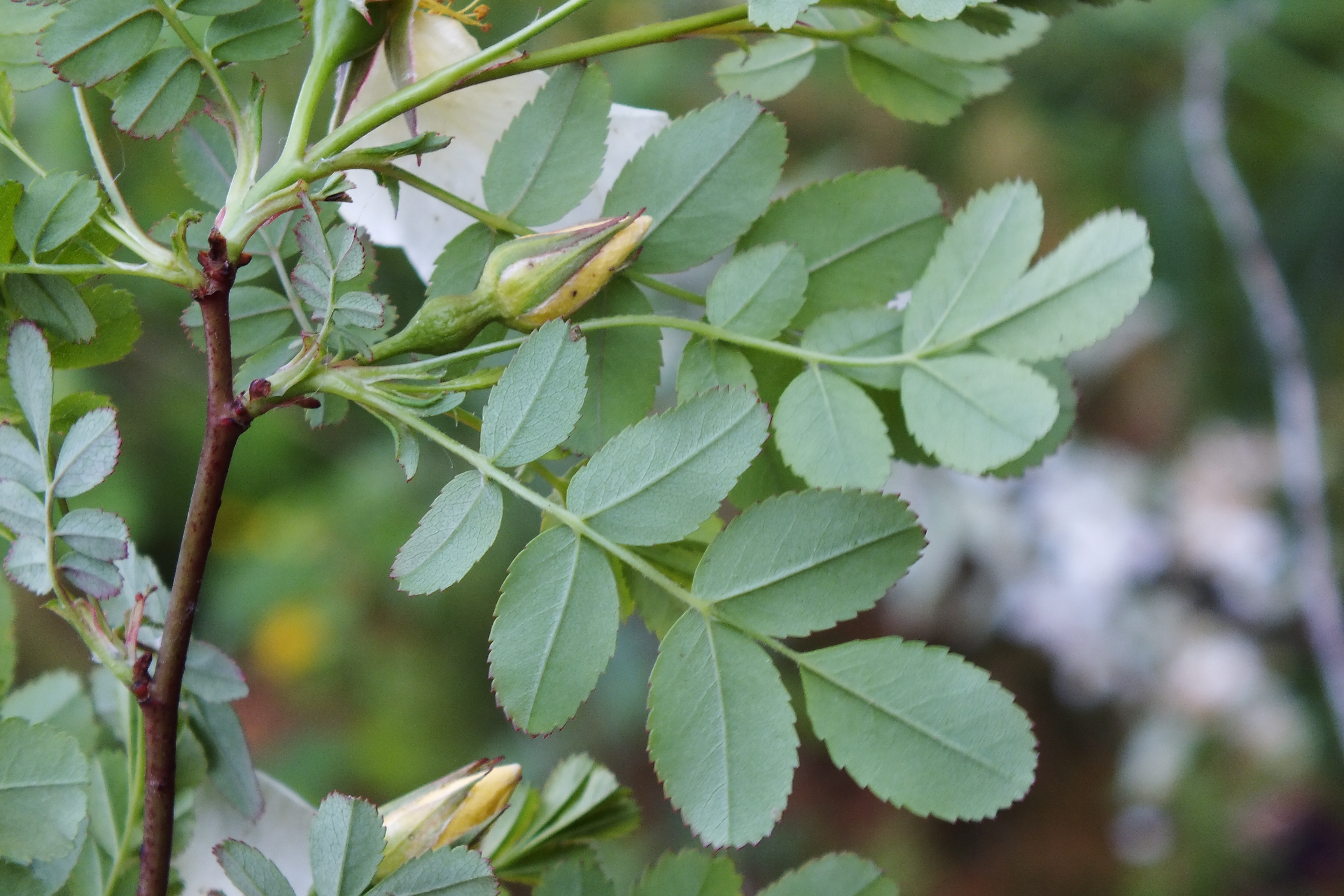Morfoloģija. Dzinumi dzeltenbrūni, rudenī sarkanīgi, ar retiem dzeloņiem. Dzeloņi taisni, līdz 1,2 cm gari. Lapas zaļas, 4-8 cm garas, plūksnoti saliktas, ar 5-13 lapiņām. Lapiņas ovālas līdz eliptiskas, 0,8-2 cm garas un 0,5- 1,2 cm platas, visa mala zobaina vai tikai lapas gals, kas ir smails. Ziedi gaiši dzelteni, vienkārši, 5 cm diametrā. Zied maijā – jūnijā. Augļi sarkani, kaili, spīdīgi, 1,2-1,5 cm plati
