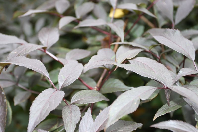 Morfoloģija. Lapas purpura krāsā, plūksnoti saliktas, ar (3) 5-7 lapiņām. Tās ir iegareni olveida, ar smailu galu un zobainu malu. Ziedi sārti, plakanās ziedkopās. Zied jūnijā –jūlijā. Gatavi augļi melni.