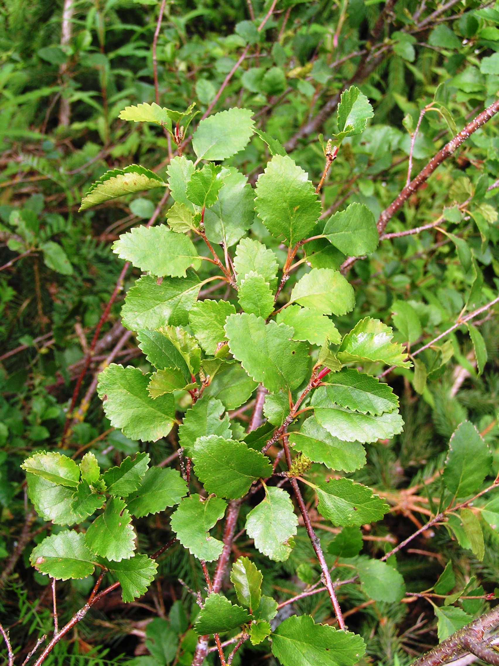 Morfoloģija. Vasarzaļš, 1-2,5 m augsts krūms. Zari stāvi, tumši brūni. Jaunie dzinumi mataini, ar sveķainām kārpiņām. Lapas olveida vai ieapaļi olveida, 1-3,5 cm garas, galotne ar smaili vai strupa, pamats noapaļots vai plati ķīļveida, malas rupji zobainas, jaunās matainas, vēlāk virspusē kailas, apakšpusē ar retiem matiņiem ar dzīslām. Sievišķās spurdzes iegareni olveida, eliptiskas vai cilindriskas, 1-1,5 cm garas.