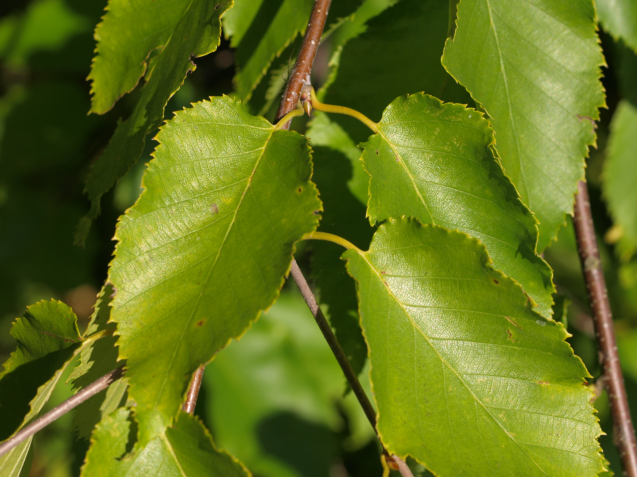 Morfoloģija. Vasarzaļš, līdz 20 m augsts koks. Miza sarkanbrūna līdz gandrīz melna, jauniem kokiem ar izteiktām lenticelēm, vecākiem kokiem tā saplaisā nevienādās, zvīņainās plātnēs. Miza aromātiska, ar patīkamu garšu. Dzinumi sākumā mataini, vēlāk kaili, sarkanbrūni. Lapas ovālas vai ovāli iegarenas ar nosmailotu galotni un sirdsveida pamatu, divkārt zāģzobainas, virspusē zeltaini spīdīgas, tumši zaļas un kailas, apakšpusē bālākas, ar matiņiem uz dzīslām, 6-12 cm garas, kātiņš pūkains. Sievišķās spurdzes sēdošas, iegareni olveidīgas, 2-3 cm garas.