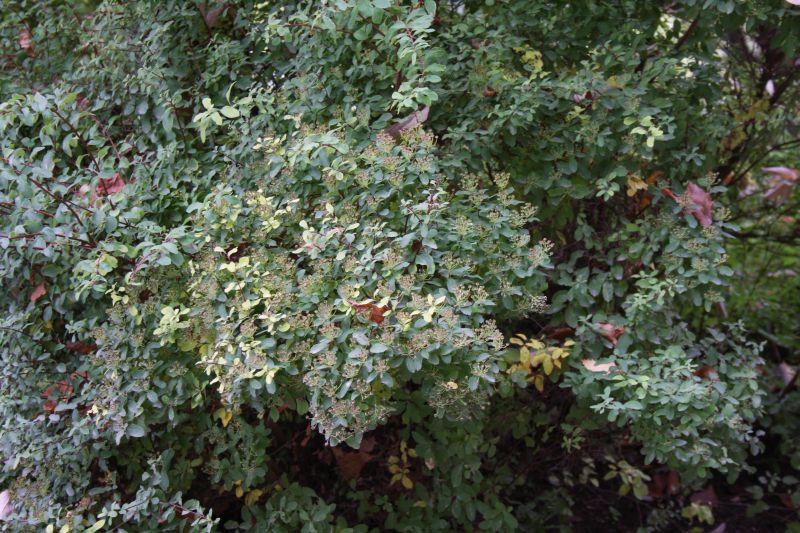 Morfoloģija. Lapas tumši zaļas, šauri eliptiskas. Ziedi balti, vairogos. Zied jūnijā. Augļi sarkani, nelieli.