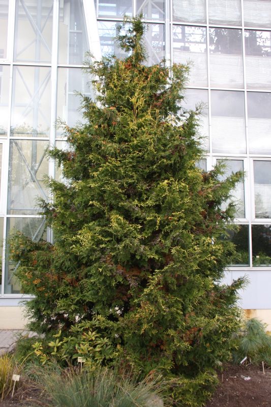 Ekoloģija. Līdz 0.5-1 m augsts un tikpat plats mūžzaļš krūms, biezs, apaļš. Salcietīga. Aug saulainās vietās un pusēnā. Mazprasīga pret augsni, labāk aug mēreni mitrās smilšmāla vai vieglās komposta augsnēs, arī kaļķotās kūdras augsnēs. Sausās augsnēs aug ļoti lēni..
