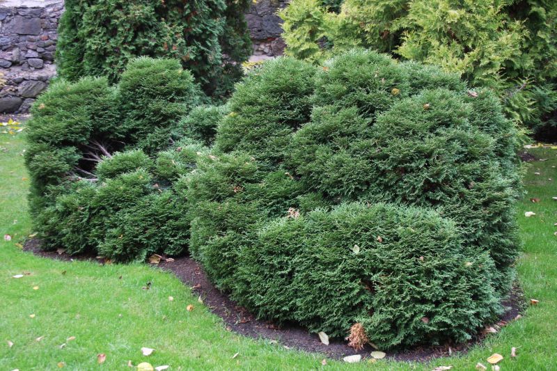 Morfoloģija. Līdz 1 m augsts un 2 m plats mūžzaļš krūms ar blīvu, sfērisku vainagu. Zari tievi ar koši tumši zaļām zvīņu skujām.