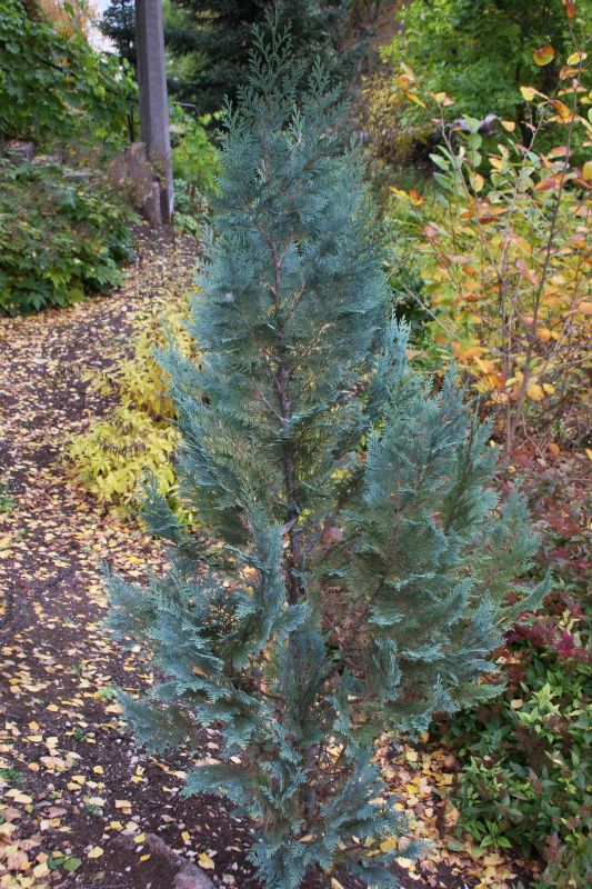 Morfoloģija. Vienlaicīgi novērojamas zvīņveida un adatveida skujas. Skujas ir zaļas.