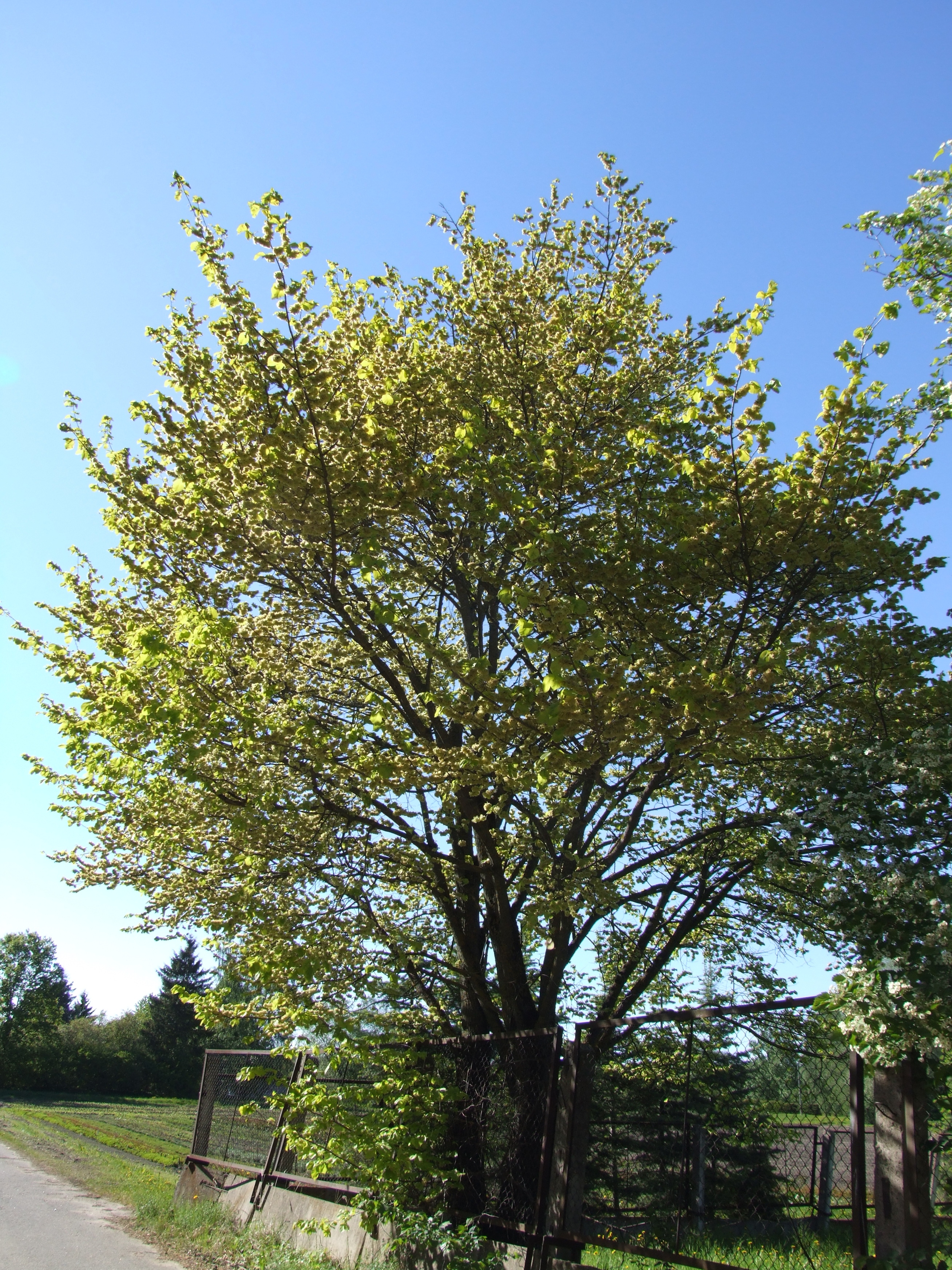 Morfoloģija. Lapas bāli dzeltenas plaukšanas laikā, vēlāk zeltaini dzeltenas, ovālas vai otrādi olveida, ar platu ķīļveida pamatni, nedaudz asimetriskas, mala zobaina.