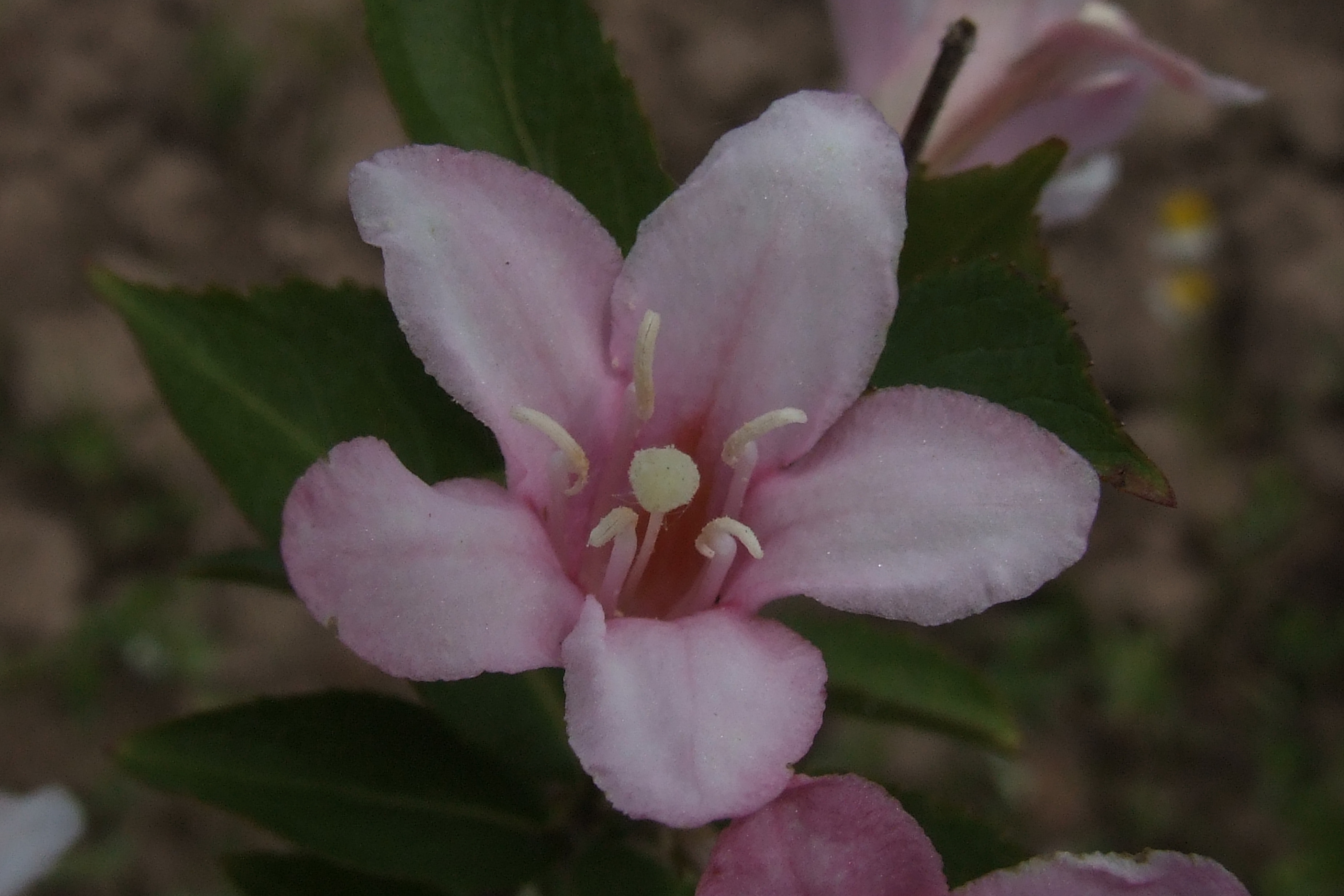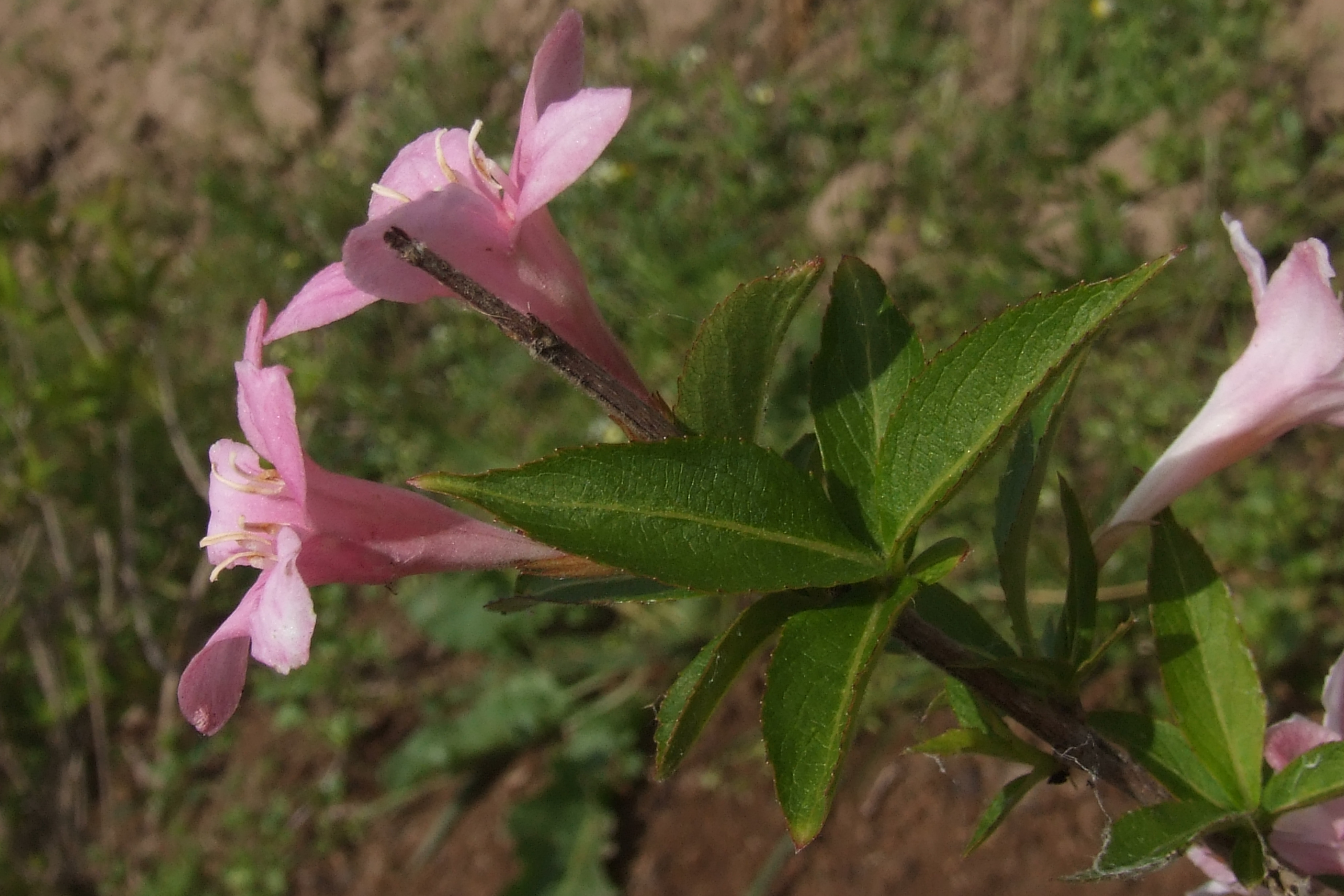 Morfoloģija. Miza pelēcīgi brūna, korķaina. Dzinumi izliekti. Lapas tumši zaļas, veselas, kailas, ar zobainu malu, smailu galu. Ziedi sākumā balti, vēlāk tumši sārti, līdz 3,8 cm gari, zvanveida, sēdoši, viegli smaržīgi, ziedkopās pa 2-8 ziediem. Zied jūnijā.