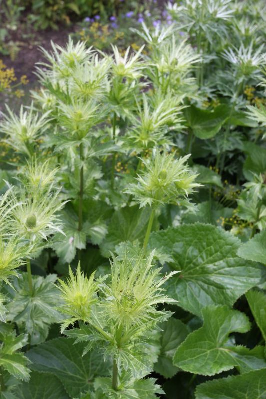 Morfoloģija. Stumbri stāvi, stingri. Piezemes lapas ar garu kātu, sirdsveida, ar asimetrisku zobainu malu. Zemākās stumbra lapas ar īsiem kātiem, bet galotnes lapas sēdošas. Ziedkopas apaļas, vēlāk cilindriskas, ar 12-18 seglapām, kas ir daivainas, šauras, zilas. Zied jūlijā- septembrī.