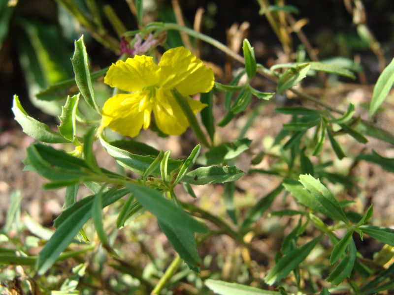 Morfoloģija. Stumbri stāvi, apakšā koksnaini. Lapas zaļas, veselas, šauri iegarenas vai lineāras, 2,5-7,5 cm garas, bez kāta, mala vesela vai zobaina, apakšpusē mataina. Ziedi dzelteni, atveras no rīta, pēcpusdienā aizveras, vainaglapas bieži krokainas, ziedi 1,3-2,5 cm diametrā, pa vienam mezglos, bez kāta. Zied jūnijā- jūlijā.